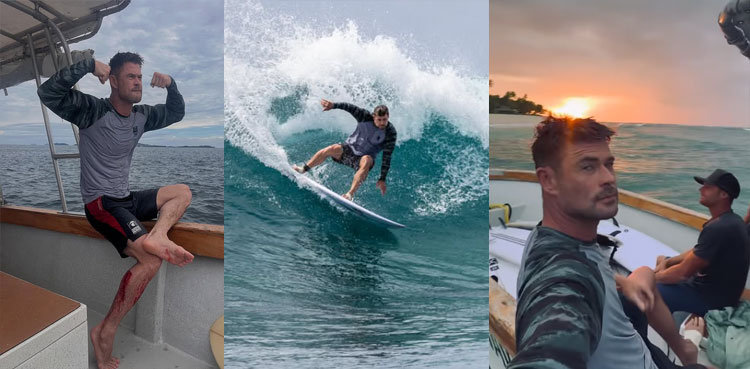 Chris Hemsworth suffers leg injury during family surfing trip in Fiji