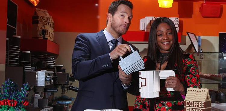 Chris Pratt turns barista at 'Lego Movie 2' launch