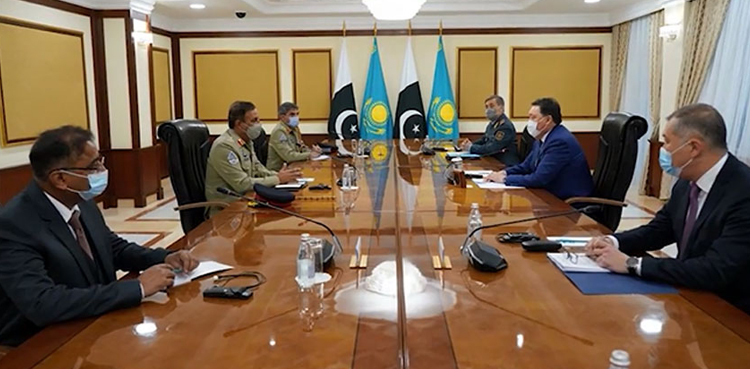 According to the ISPR, the Chairman JCSC who is on an official visit to Kazakhstan had separate meetings with the Defence Minister, Deputy Minister of Industry and Infrastructural Development and Chief of General Staff of Kazakhstan Armed Forces.
