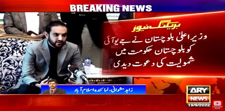 QUETTA: Balochistan CM Abdul Qudoos Bizenjo has invited Jamiat Ulema-e-Islam (JUI-F) to join Balochistan government, ARY News reported on Monday, quoting sources.