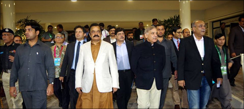 Flanked by Punjab Law Minister Rana Sanaullah and Chairman PSL Najam Sethi, the CM Punjab was briefed about security plan and other arrangements at the stadium.