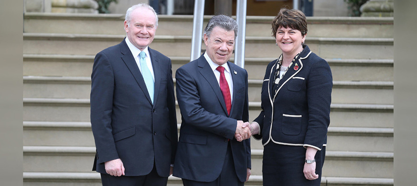 Santos met Northern Irish First Minister Arlene Foster and her deputy Martin McGuinness at the end of a three-day state visit to the United Kingdom, the first by a Colombian president.