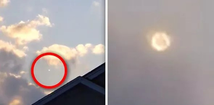 The Kuroda family shot the video from their backyard which captures an unsually bright source of light. The UFO was seen piercing through a dense patch of clouds around sunset.