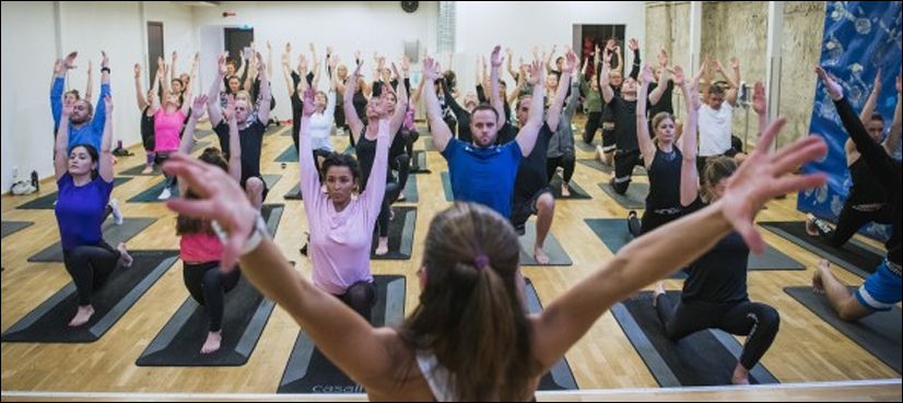 Rosy-cheeked and smiling, the 60 Bjorn Borg employees taking part in this week’s gruelling yoga session head to the changing rooms, their endorphins soaring.