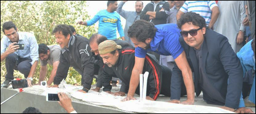 ISLAMABAD: Chairman Pakistan Tehreek-i-Insaf (PTI) Imran Khan on Monday demonstrated his fitness by performing pushups alongside other PTI workers and supporters in his residence at Bani Gala.