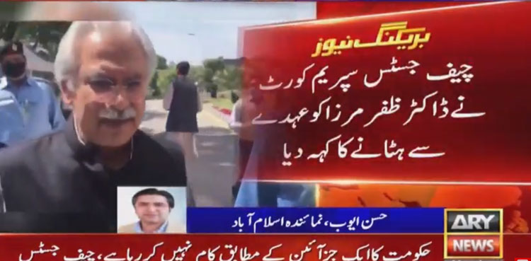 ISLAMABAD: Supreme Court of Pakistan on Monday asked the federal government to remove Special Assistant to Prime Minister on Health Dr Zafar Mirza from his post, ARY News reported.