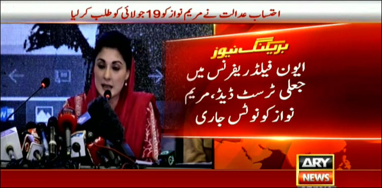 ISLAMABAD: An accountability court on Tuesday summoned Pakistan Muslim League-Nawaz (PML-N) Vice President Maryam Nawaz to appear before it on July 19 over presenting fake trust deed in the Avenfield reference.