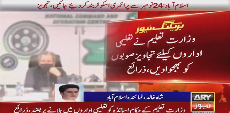 ISLAMABAD: Amid the second wave of COVID-19 in the country, the federal education ministry has conveyed suggestions to the provinces regarding the closure of educational institutes during winter vacations, ARY NEWS reported on Wednesday.