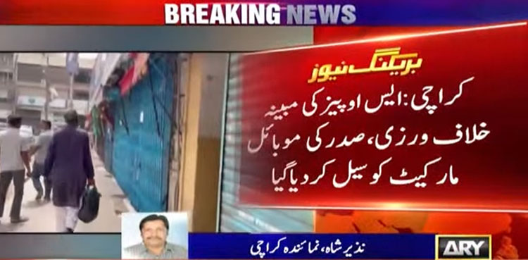 KARACHI: Local administration on Saturday sealed Karachi’s Saddar Mobile Market over violation of the standard operating procedures (SOPs) put in place to stem the third wave of Covid-19.