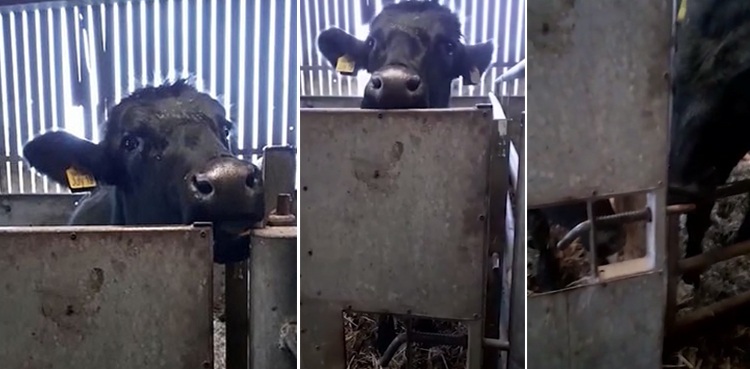 Cow uses unique trick to unbolt door for escaping cattle pen