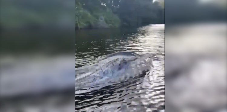 The video, which was reportedly filmed by a fisherman, shows a fully-grown crocodile propelling itself in water and racing against a speedboat.