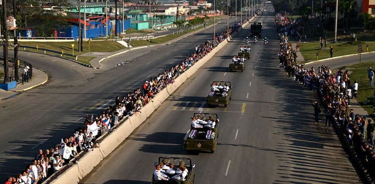 Cubans bundled in hats and jackets gathered on the capital`s Malecon waterfront boulevard waving Cuban and Venezuelan flags under gray skies as blustery winds and waves buffeted the coast.