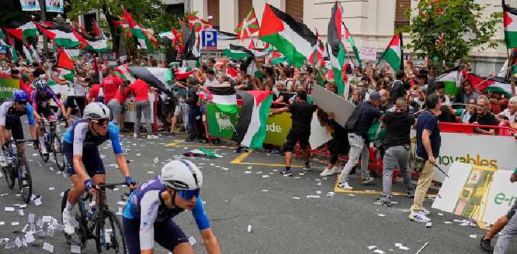 Last month, protesters disrupted several stages of Spain’s Vuelta because of its participation in the prestigious three-week cycling event.