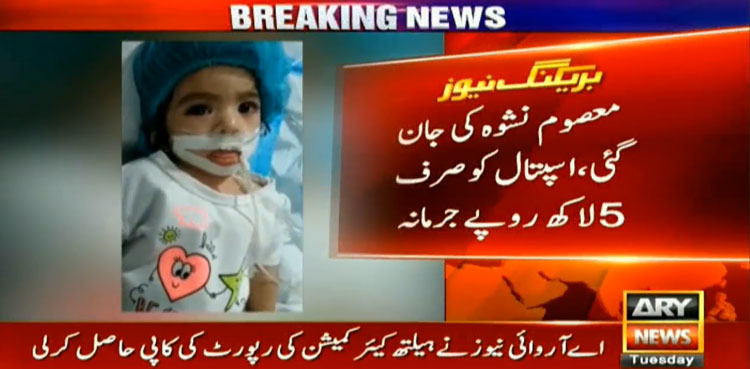 Dar ul Sehat fined Rs. 500,000 for 'negligence' leading to Nishwa's death