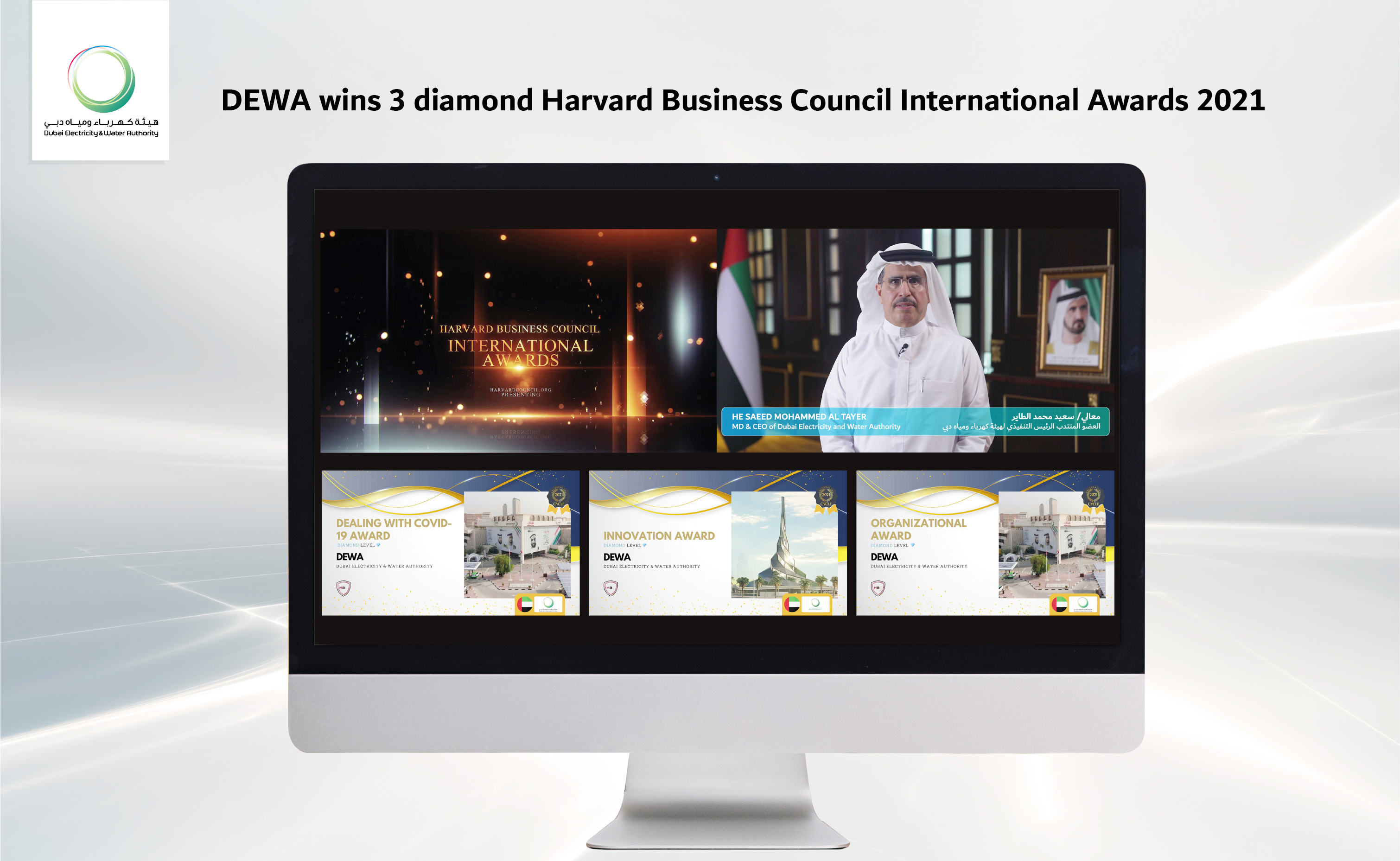 Dubai Electricity and Water Authority (DEWA) has won three diamond awards from the Harvard Business Council International Awards 2021, organised by the Harvard Business Council in New York, USA.