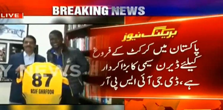 RAWALPINDI: International cricketer and West Indian captain Darren Sammy met with Inter Services Public Relations (ISPR) Director General Major Gen Asif Ghafoor on Tuesday, reported ARY News.