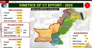 He added that 5,397 terrorist incidents took place in Pakistan in 2025, of which 3,811 were reported in Khyber Pakhtunkhwa (71%), 1,557 in Balochistan (29%), and 29 incidents in other parts of the country.