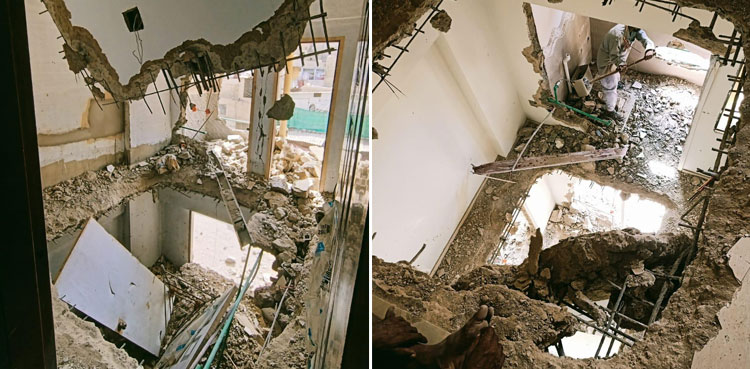 Earlier in the day, the building control authority initiated an operation to demolish a seven-storey illegal building in Garden’s Ghas Mandi. The multi-storey building is being technically demolished by the SBCA staff.