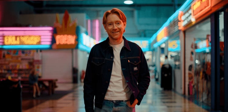 The video features several high-profile cameos: Jodie Turner-Smith appears as an aerobics instructor, Greta Lee as a vocalist, and Lewis Capaldi as a humorous mall photographer documenting the couple’s goofy adventures. Cillian Murphy narrates the commercial and offers a thumbs-up in promotional photos, while Graham Norton himself plays a cynical “Nope-alite” salesman at the mall.
