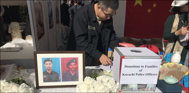 BEIJING: Citizens of China are collecting donations to raise funds to help the families of the two cops who sacrificed their lives while foiling the attack Friday over the Chinese consulate in Karachi. ARY News reported on Monday.
