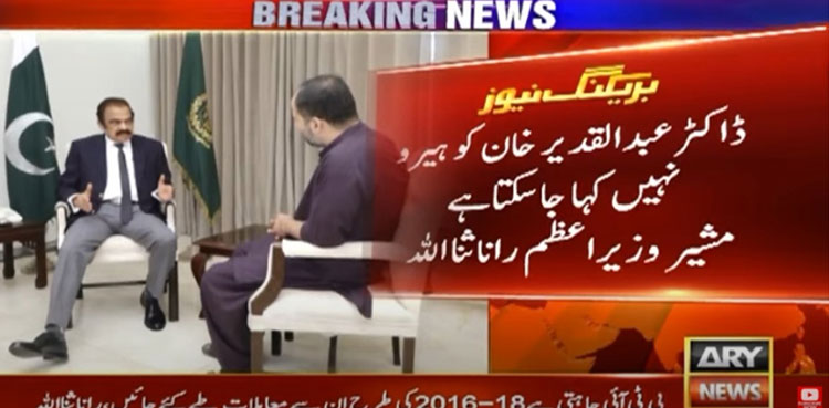 In an exclusive interview with ARY News, Rana Sanaullah said that while Dr Abdul Qadeer Khan is rightfully remembered and respected as a scientist, he can not be regarded as a hero or a leader.