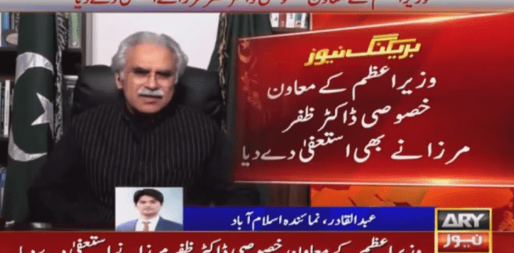ISLAMABAD: Special Assistant to the Prime Minister (SAPM) on National Health Services Dr Zafar Mirza has resigned from his post on Wednesday, ARY News reported.