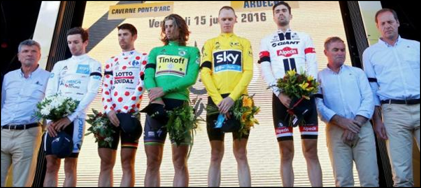 Organisers had debated whether the stage should be cancelled and officials observed a minute’s silence before the first rider went down the ramp. There was another minute of silence at the podium ceremony after the stage.