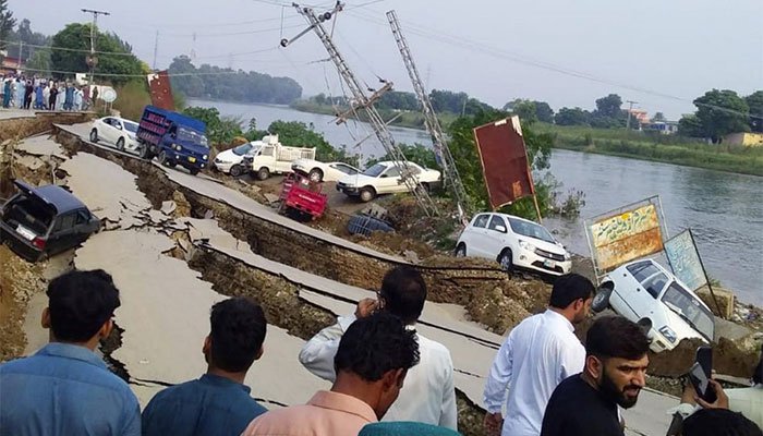 The reports from AJK’s Mirpur stated that deep cracks emerged on roads near Jatlan Canal situated in Upper Jhelum and several cars were overturned into it.