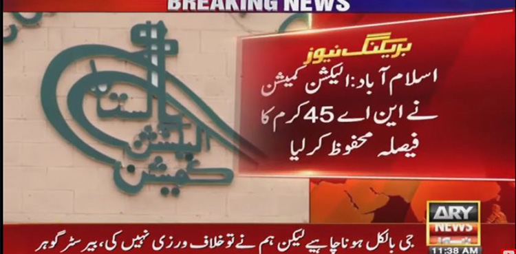 ISLAMABAD: The Election Commission of Pakistan (ECP) on Wednesday reserved the verdict in a case related to violation of the election code during NA-45 Kurram by-poll, ARY News reported.