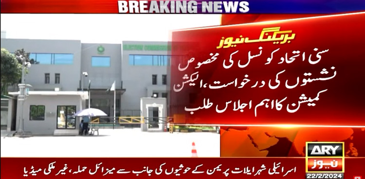 ISLAMABAD: The Election Commission of Pakistan (ECP) on Thursday convened an important meeting to decide on the reserved National Assembly seats of Sunni Ittehad Council (SIC) today, ARY news reported citing sources.