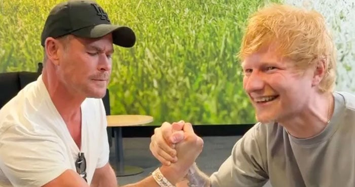 Ed Sheeran takes down Chris Hemsworth in playful arm-wrestling battle: Watch