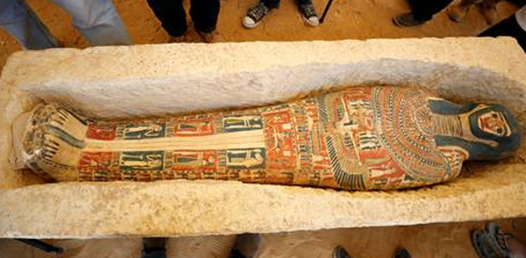 As they opened the pyramids, archaeologists presented late-period mummies, masks, tools and coffins discovered during excavations that began near the Dahshur pyramids last year and are due to continue.