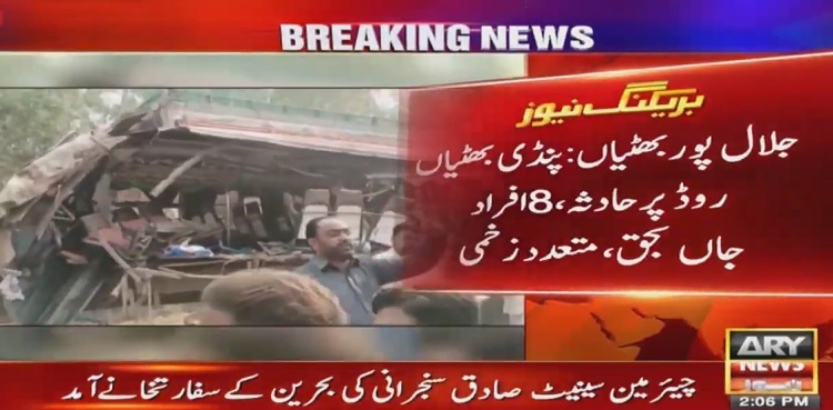 Eight killed, several injured in Jalalpur Bhattian road accident