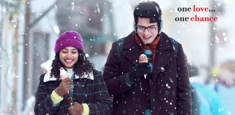 The poster depicts Junaid Khan and Sai Pallavi strolling down a snowy street. Both are seen smiling and enjoying ice cream as snow falls around them, dressed in cosy winter attire, including coats, scarves, and gloves. The poster features the heartfelt tagline: “One love… one chance,” along with the caption, “In the chaos of life, love will find you… Ek Din ❤️.” The imagery suggests a serene tale of romance, emphasizing warmth and simplicity over high-intensity drama.