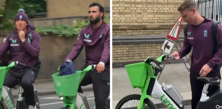 The video, shared by the England and Wales Cricket Board (ECB) on their official Facebook page, shows Harry Brook, Brydon Carse and Matthew Potts arriving on the bikes while wearing their training kit.