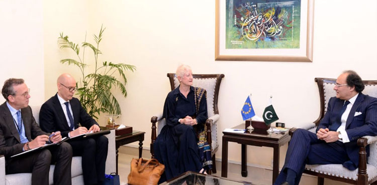 Aurangzeb welcomed the Ambassador of the EU and appreciated the longstanding bilateral relations and development cooperation between EU and Pakistan. He thanked the Ambassador for EU’s ongoing support in flood-affected areas of Pakistan.