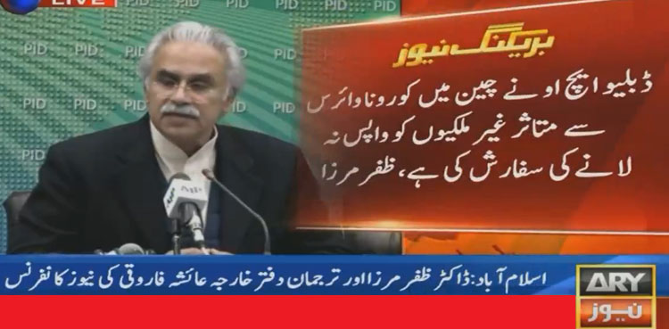 ISLAMABAD: Special Assistant to the Prime Minister on National Health Services Dr Zafar Mirza said the government has decided not to repatriate Pakistani citizens stranded in China amid the fear of deadly disease outbreak in the country, ARY News reported on Thursday.
