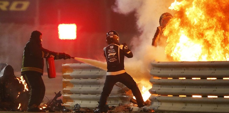 According to the details, Romain Grosjean, 34, lost his control over the steering after he hit another car before driving into the barrier during the first lap of the race.