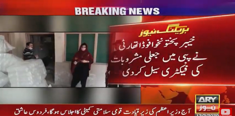 NOWSHERA: The Khyber Pakhtunkhwa Food Authority on Friday sealed a fake beverages factory during raid in area of Pibi, Nowshera, ARY News reported.
