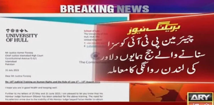 More facts about Judge Additional District and Sessions Judge (ADSJ) Humayun Dilawar’s departure to London were revealed after ARY News obtained University of Hull’s documents.