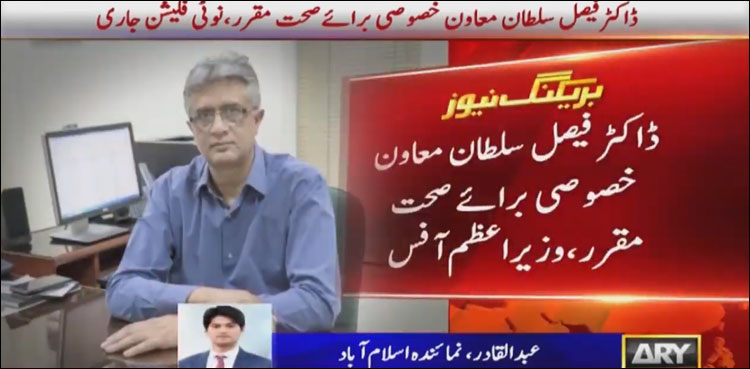 ISLAMABAD: Prime Minister Imran Khan has appointed Dr Faisal Sultan as his Special Assistant on National Health Services, Regulation and Coordination on Monday, ARY News reported.