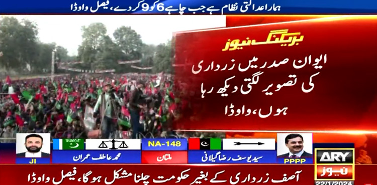 ISLAMABAD: Former federal minister Faisal Vawda claimed that he foresees Pakistan Peoples Party (PPP) co-chairman Asif Ali Zardari’s picture in the President House, ARY News reported.