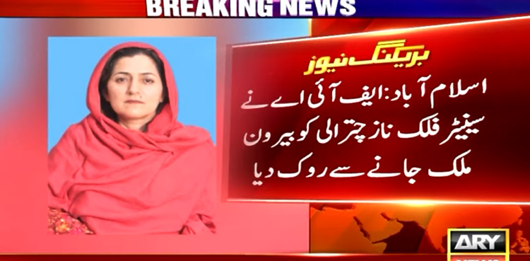 ISLAMABAD: Pakistan Tehreek-e-Insaf (PTI) Senator Falak Naz Chitrali was ‘barred’ from traveling abroad at Islamabad International Airport.