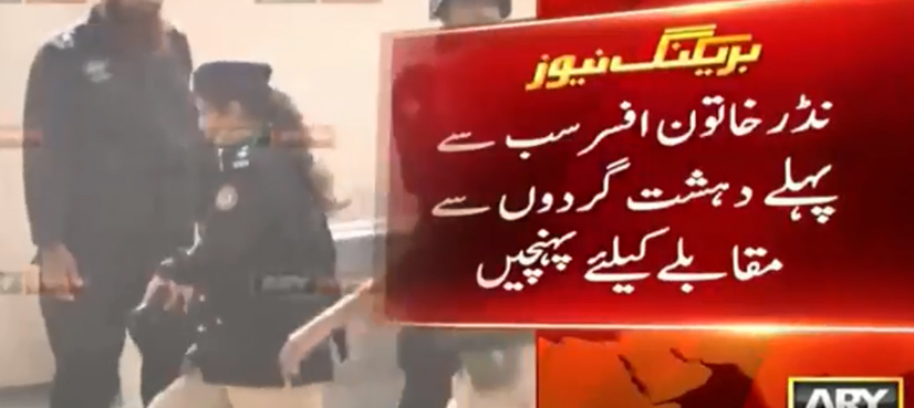 KARACHI: As security forces and police foiled the terror attack on Chinese Consulate in Karachi’s Clifton area on Friday, a fearless lady cop received accolades for setting an example of bravery.