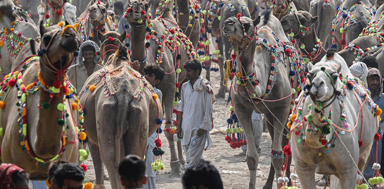 More than 250 camels have been brought to the Islamabad market, along with thousands of bulls, cows, goats and sheep.