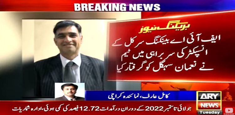 During the arrest, the FIA team was resisted by Noman Sehgal and his staff and as a result FIA Inspector Sallahuddin and team members were injured, the sources said.