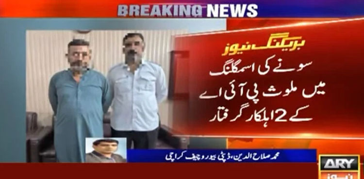 Both Pakistan International Airlines (PIA) employees, who were part of the gold smuggling bid, were identified as Nasir Khan and Shahidullah, were taken into custody during the raid.