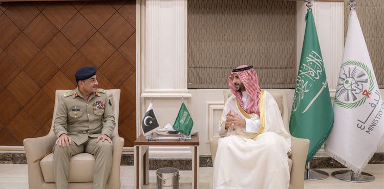 Riyadh: Saudi Arabia’s Minister of Defence, Prince Khalid bin Salman bin Abdulaziz, met Pakistan’s Chief of the Army Staff (COAS) and Chief of Defence Forces (CDF), Field Marshal Syed Asim Munir, in Riyadh to discuss recent Iranian attacks on the Kingdom and ways to address the escalating situation, the Inter-Services Public Relations (ISPR) said on Saturday.