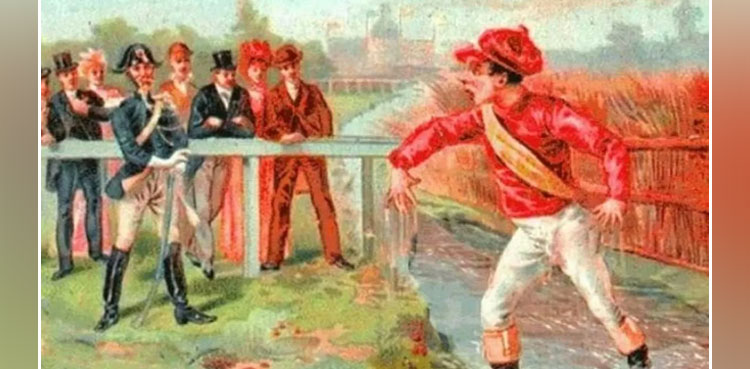 The optical illusion sees an irate wet jockey asking people to help him find his missing horse.