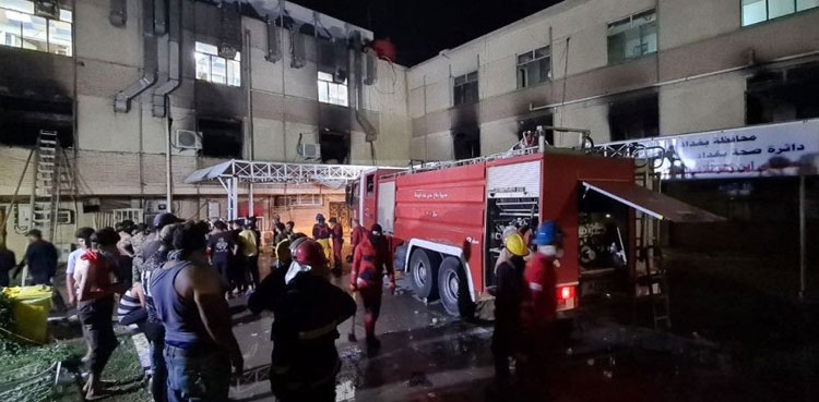 Many of the victims were on respirators and were suffocated or burned in the smoke and flames when the blaze at eastern Baghdad’s Ibn al-Khatib hospital started with an explosion caused by “a fault in the storage of oxygen cylinders”, medical sources said.